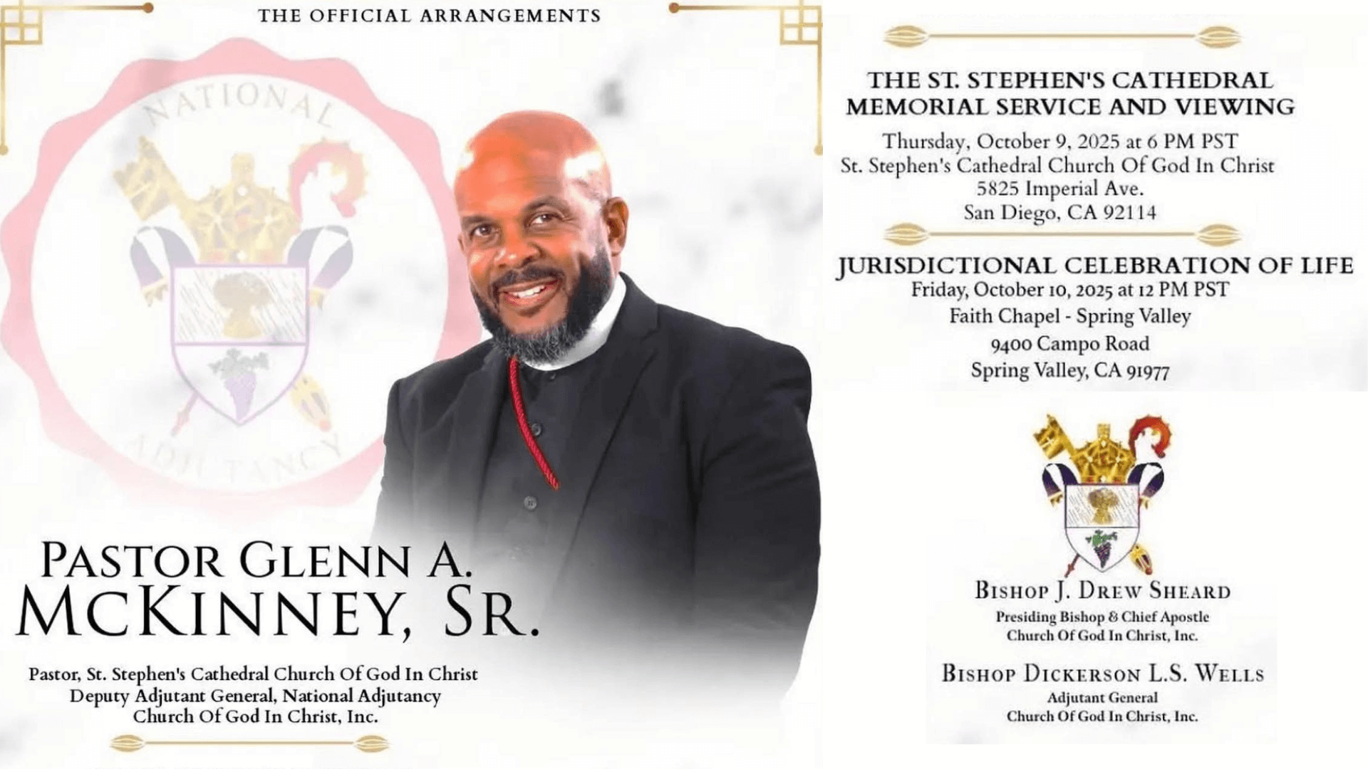 Eld. Glenn McKinney Sr. is a native of San Diegan and is the Senior Pastor of St. Stephen’s COGIC, an anchor in San Diego’s inner city founded over 60 years ago by his father, the late Bishop George D. McKinney. Elder McKinney was appointed to the office of Pastor on March 30, 2021, by the Presiding Bishop of The Church of God in Christ, Inc., Bishop J. Drew Sheard, at the homegoing celebration of his father, Bishop George D. McKinney.
